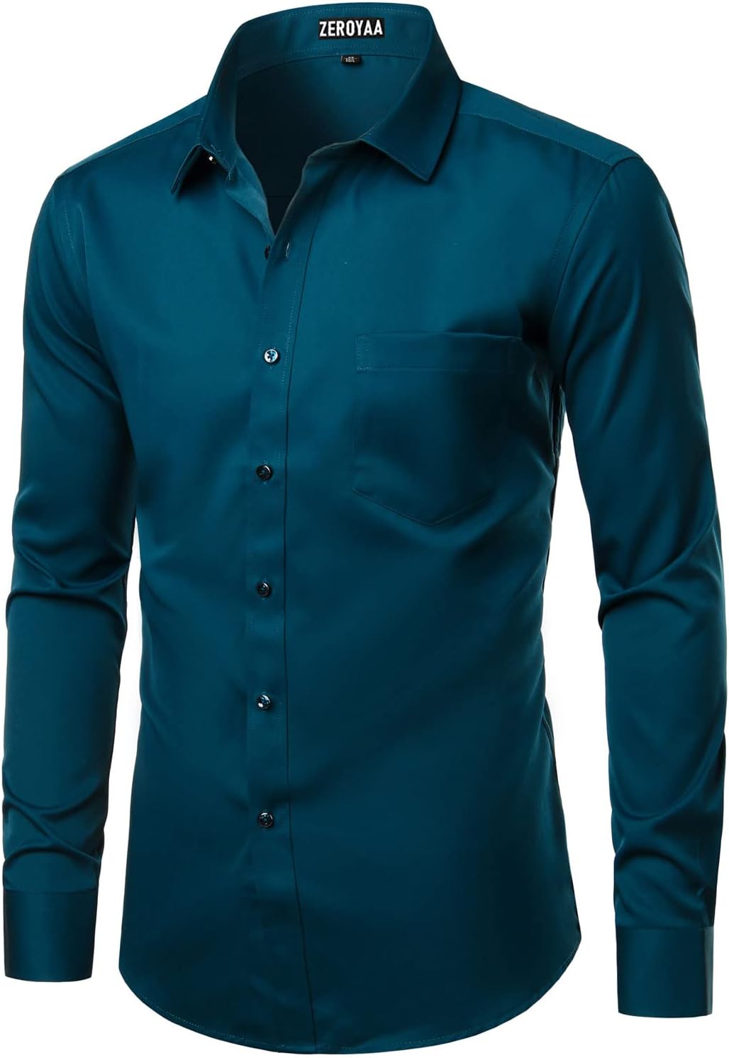 ZEROYAA Men's Business Formal Slim Fit Long Sleeve Button Up Dress Shirts with Pocket